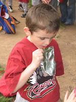 Below are pictures. Steffie was at the game as well, and I finally found out that she actually chewed gum BEFORE the age of 10 (last month). A-ha! I gave her a pack